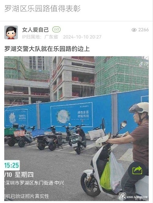 10. 帖文《罗湖区乐园路值得表彰》