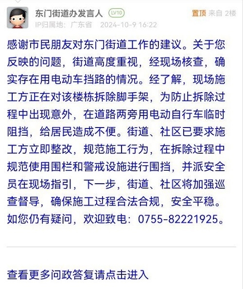 各职能单位如需对网友反映的问题进行回应,可在深圳论坛注册官方账号并通过认证,回帖进行回应。