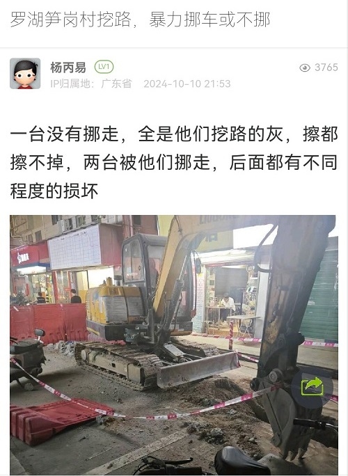 20. 帖文《罗湖笋岗村挖路,暴力挪车或不挪》