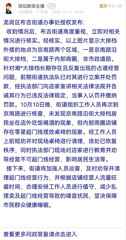 11. 帖文《请布吉街道办回应大排档晚上扰民》