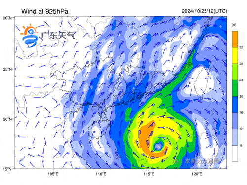 随着台风“潭美”的靠近并西行,加上西路又有冷空气补充,25日夜间至27日,广东省自东向西南湿度增大,云量增多,雨水渐显。