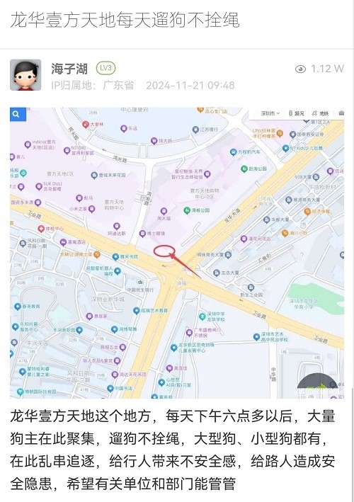 17. 帖文《龙华壹方天地每天遛狗不拴绳》