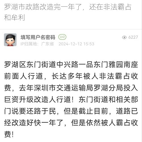 6. 帖文《罗湖市政路改造完一年了,还在非法霸占和牟利》