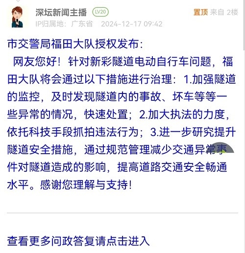 各职能单位如需对网友反映的问题进行回应,可在深圳论坛注册官方账号并通过认证,回帖进行回应。