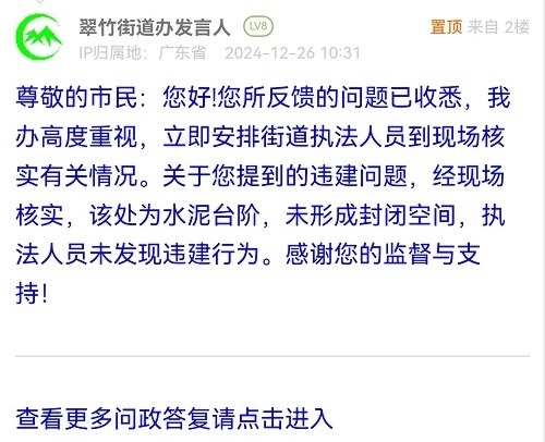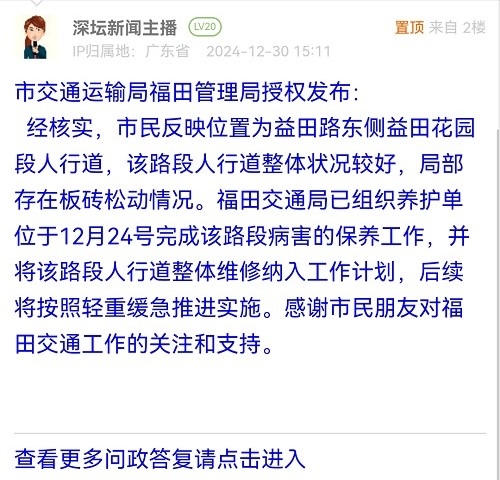 各职能单位如需对网友反映的问题进行回应,可在深圳论坛注册官方账号并通过认证,回帖进行回应。