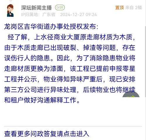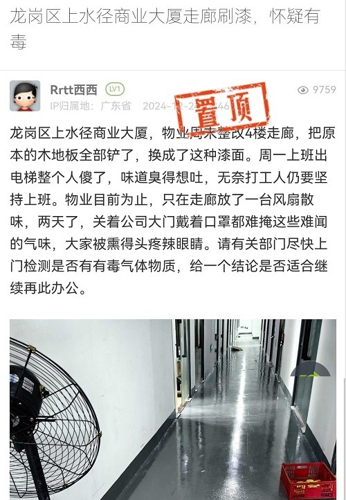 10. 帖文《龙岗区上水径商业大厦走廊刷漆,怀疑有毒》