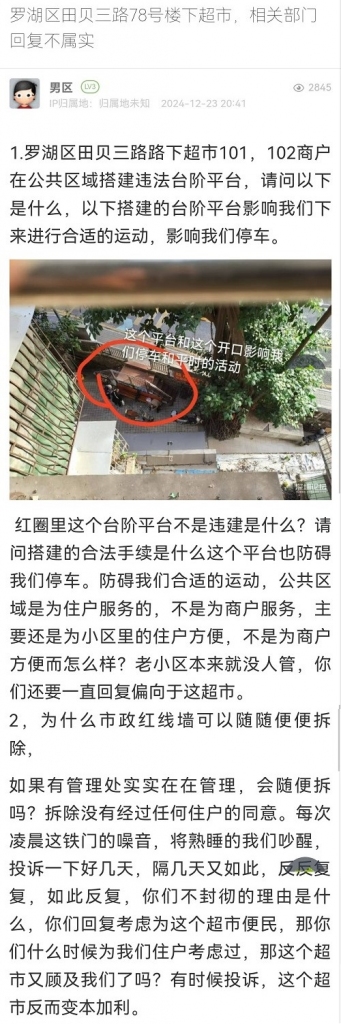 7. 帖文《罗湖区田贝三路78号楼下超市,相关部门回复不属实》