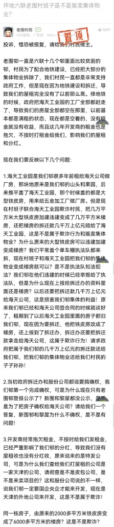 11. 帖文《坪地六联老围村班子是不是贩卖集体物业?》