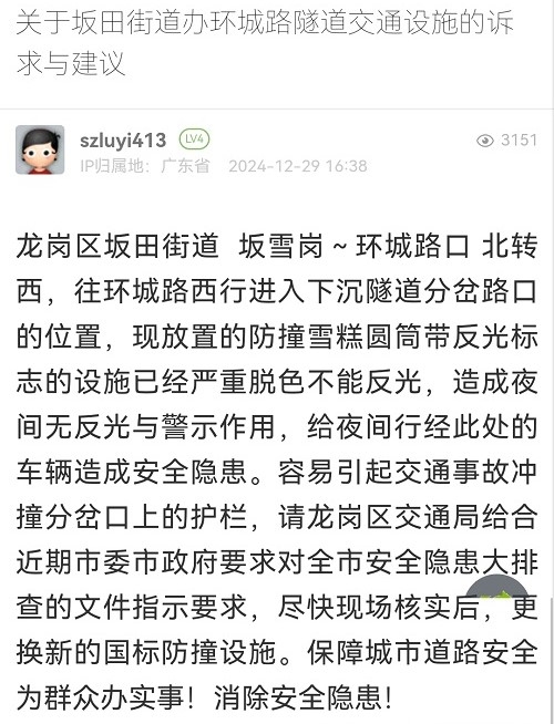 18. 帖文《关于坂田街道办环城路隧道交通设施的诉求与建议》