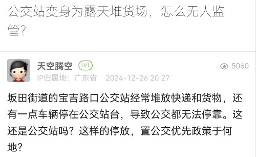 14. 帖文《公交站变身为露天堆货场,怎么无人监管?》