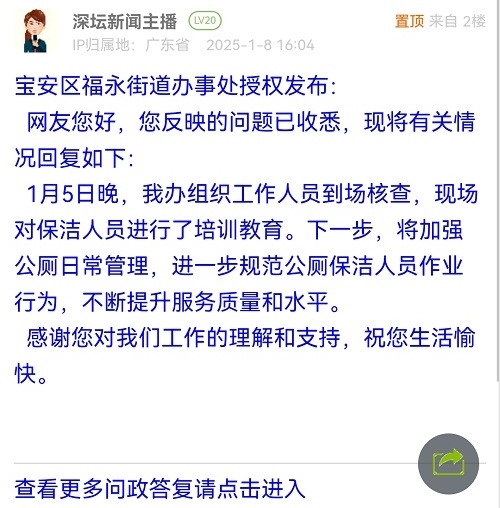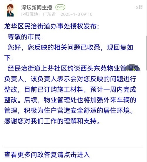 各职能单位如需对网友反映的问题进行回应,可在深圳论坛注册官方账号并通过认证,回帖进行回应。