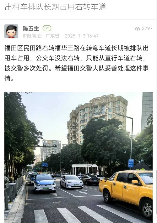 19. 帖文《出租车排队长期占用右转车道》《出租车排队长期占用右转车道》