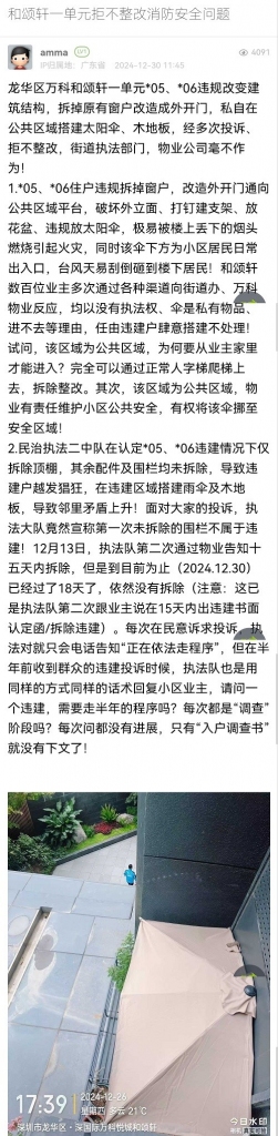 2. 帖文《和颂轩一单元拒不整改消防安全问题》