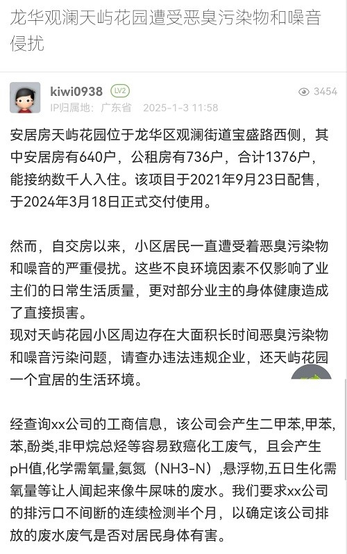 18. 帖文《龙华观澜天屿花园遭受恶臭污染物和噪音侵扰》