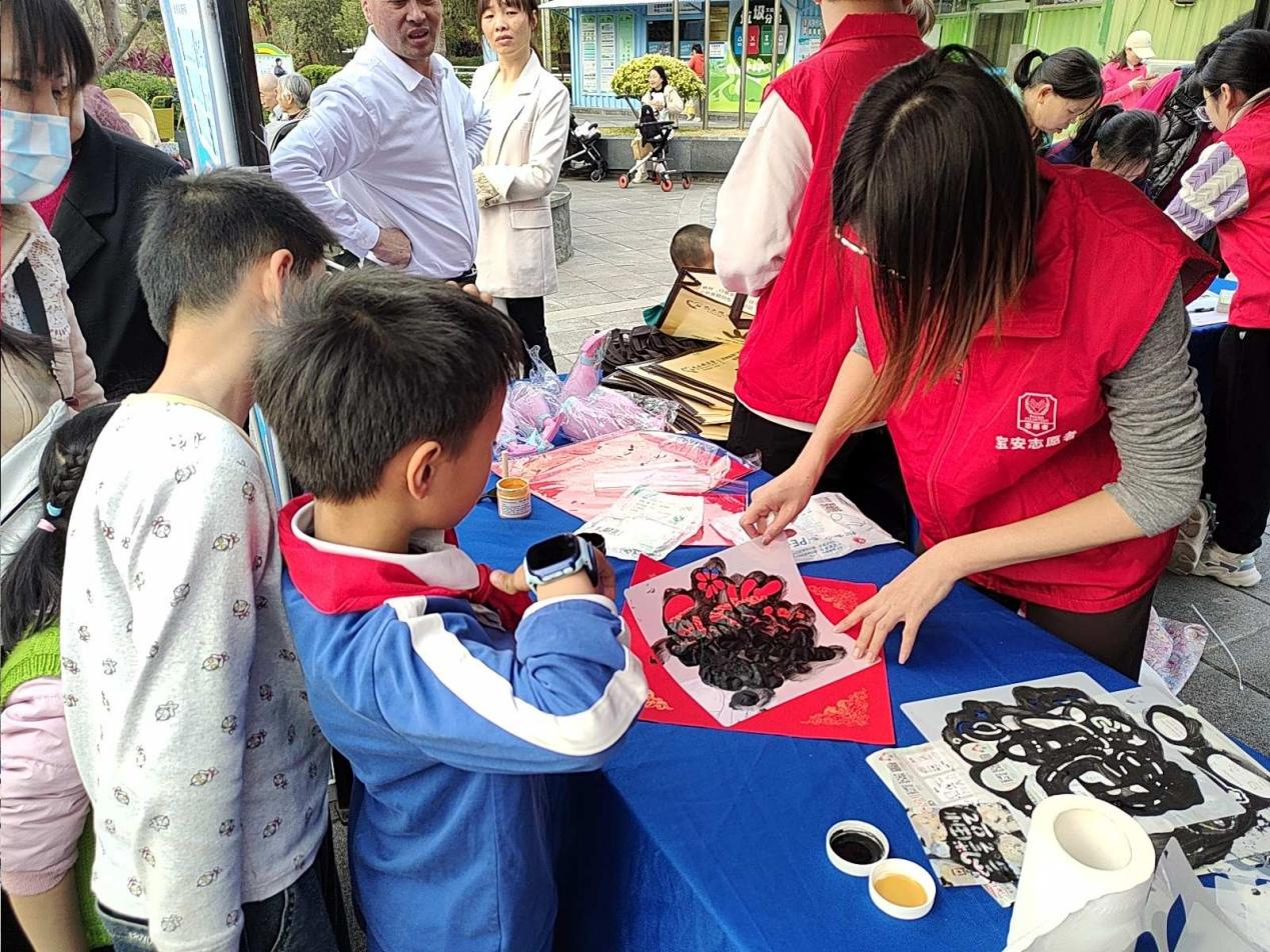 活动当天,桌上摆满了各式各样的模板和彩色印泥。居民们热情高涨,大人小孩齐上阵,挑选自己喜欢的模板,小心翼翼地蘸取印泥,再将这份满载祝福的印记轻轻按压在红纸上。这样的作品不仅传递了节日的喜悦,更凝聚了家人间的温馨与爱意。