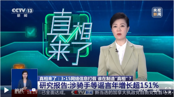 “涉外卖骑手、网约车司机等灵活就业群体的谣言数量激增,给相关企业声誉造成难以估量的损失,进而影响营商环境健康发展。”清华大学新闻与传播学员助理研究员张诗瑶表示。