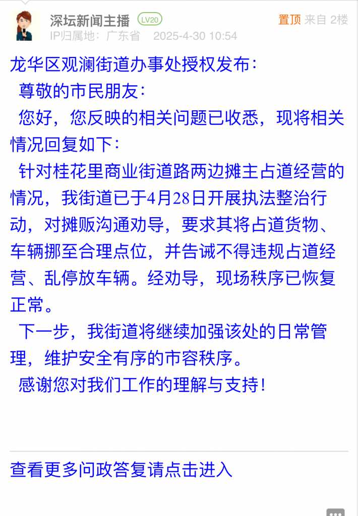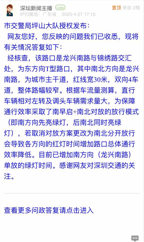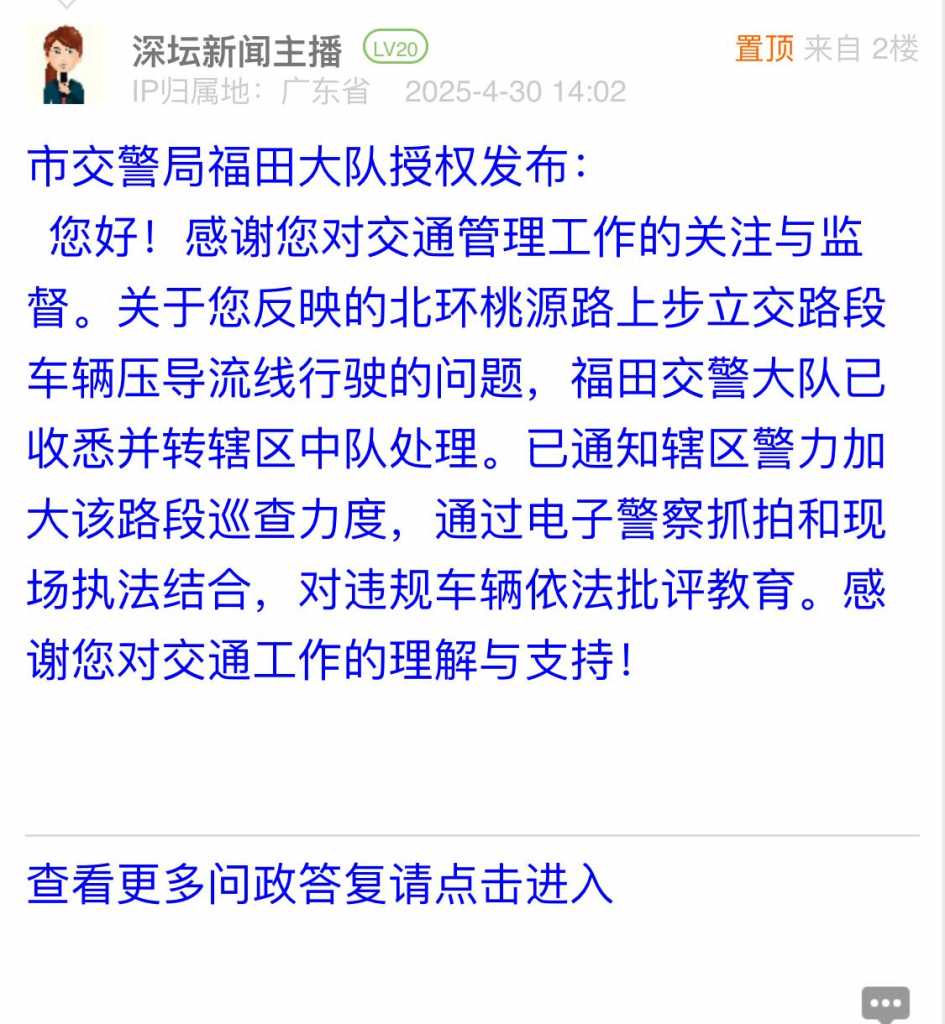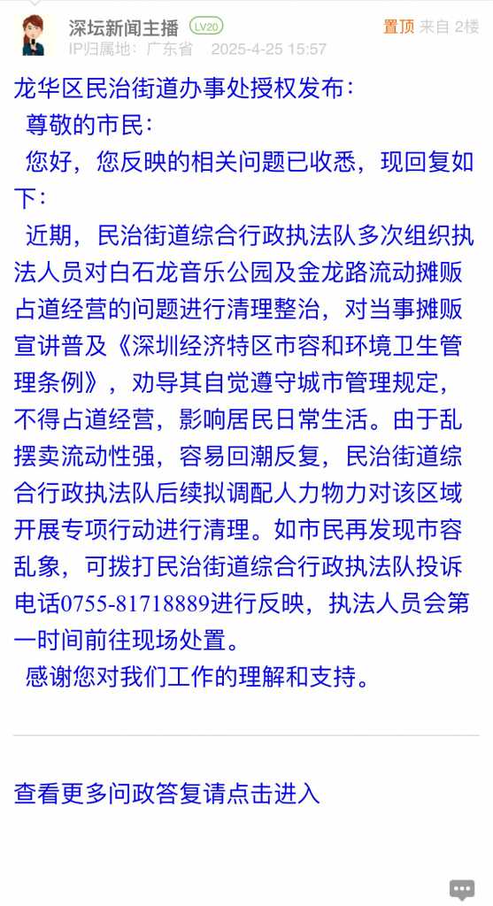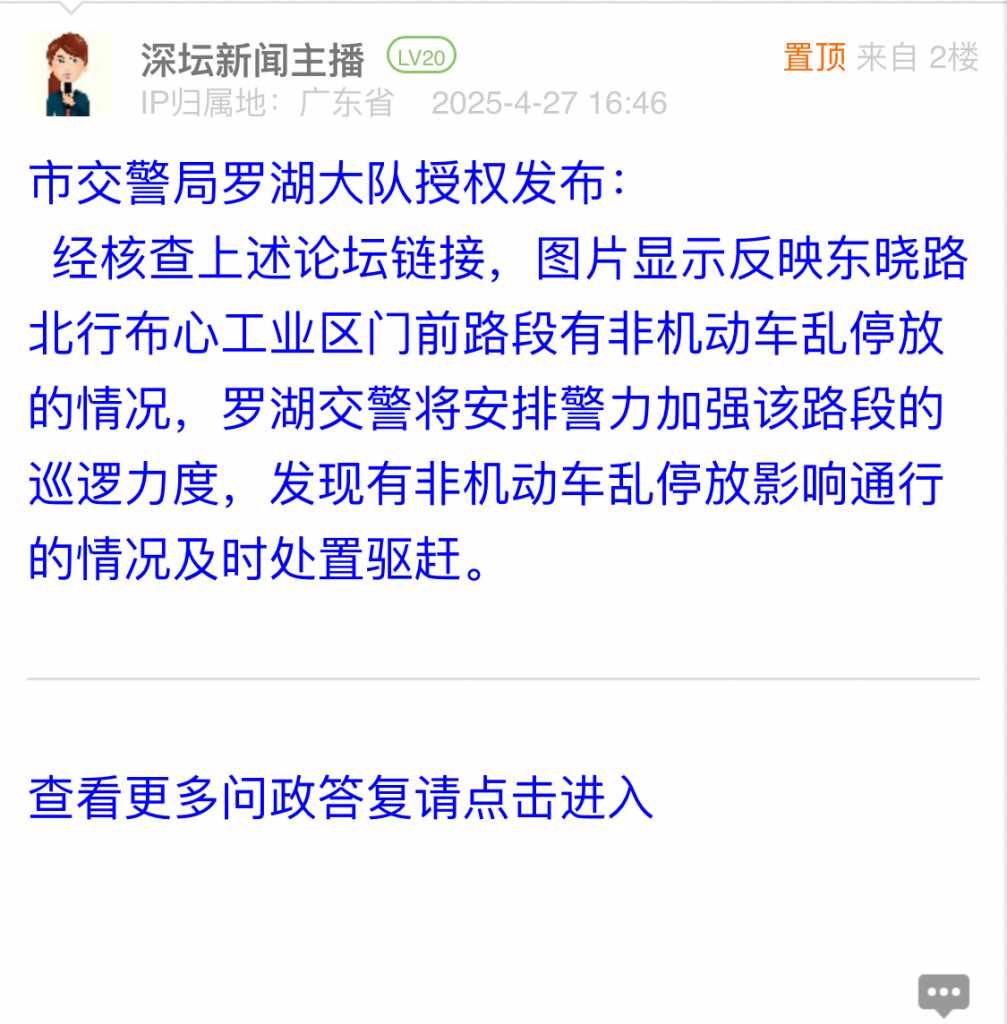 各职能单位如需对网友反映的问题进行回应,可在深圳论坛注册官方账号并通过认证,回帖进行回应。