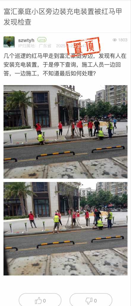 11. 帖文《富汇豪庭小区旁边装充电装置被红马甲发现检查》
