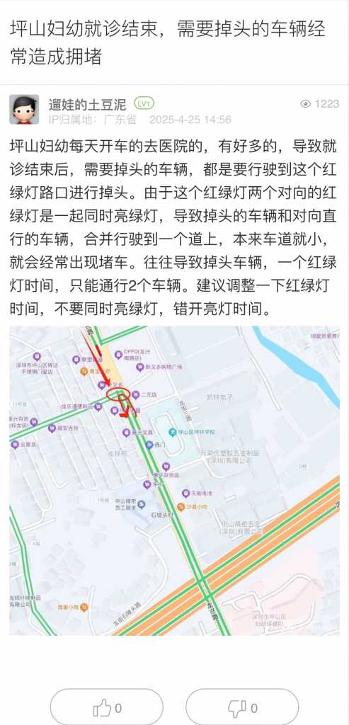 10. 帖文《坪山妇幼就诊结束,需要掉头的车辆经常造成拥堵》