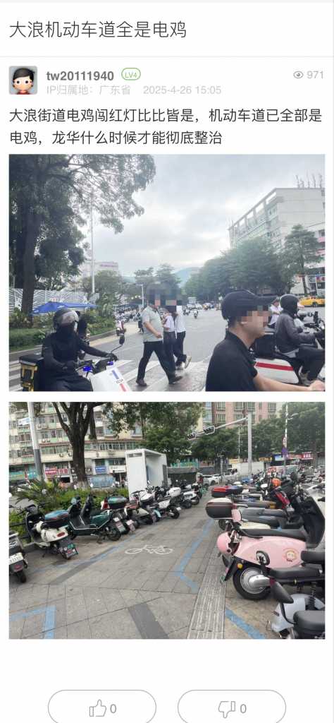 16. 帖文《大浪机动车道全是电鸡》