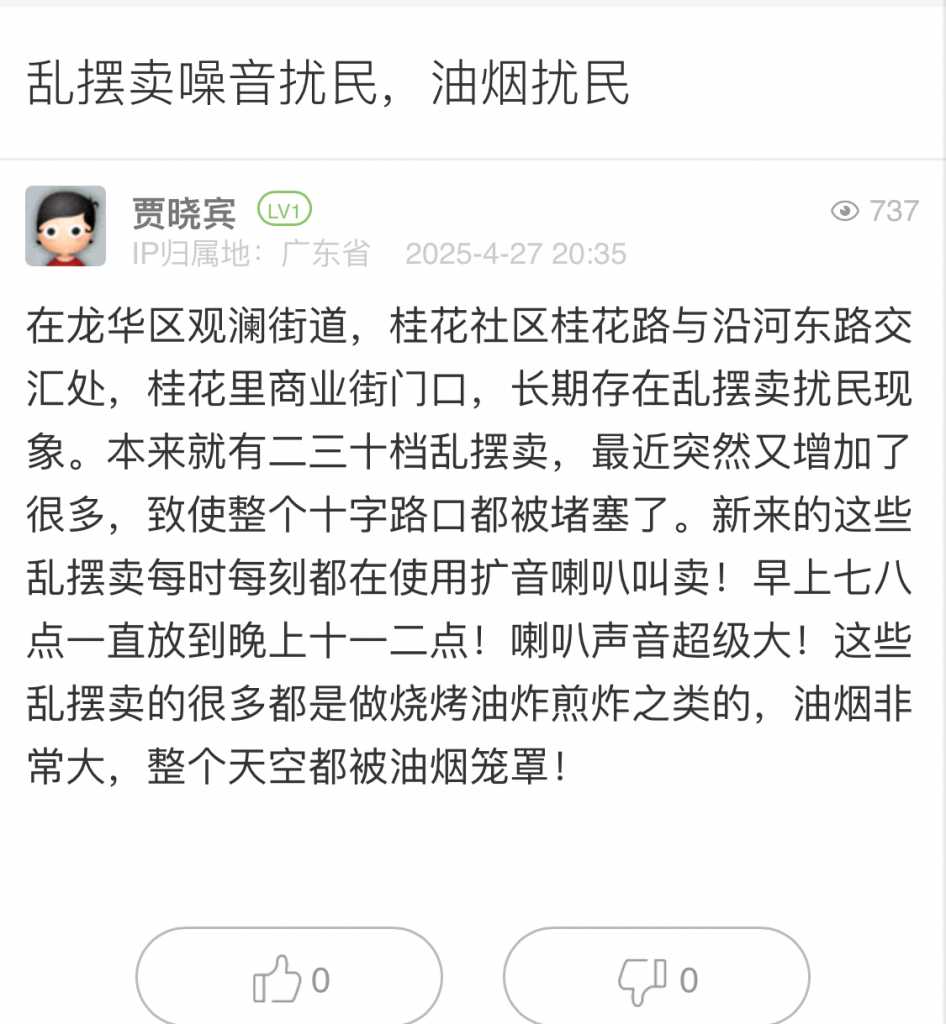 17. 帖文《乱摆卖噪音扰民,油烟扰民》