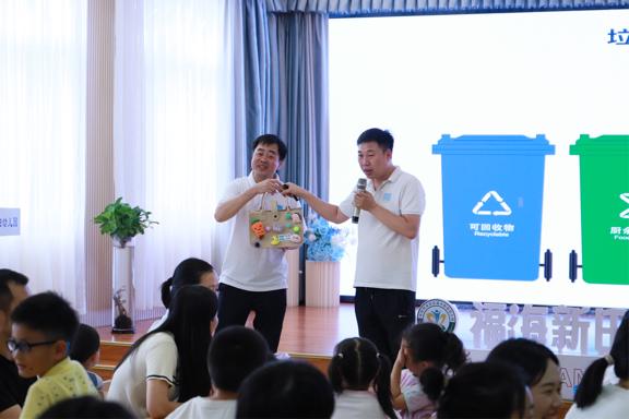 蒲公英志愿讲师通过生动有趣的视频动画和浅显易懂、色彩丰富的PPT,引导小朋友们积极学习垃圾分类知识。以“伤心的海洋生物”的故事为切入点,讲师妙趣横生地阐述了当前生活垃圾的严峻形势以及生活垃圾分类和减量的重要性。同时,课堂中穿插生活垃圾分类模拟投放小游戏,进一步加深小朋友们对垃圾分类的理解,讲师还带领小朋友们共同参与趣味游戏,更生动形象的方式掌握垃圾分类减量的知识,使小朋友们在轻松愉快的游戏中熟练掌握垃圾分类技巧。