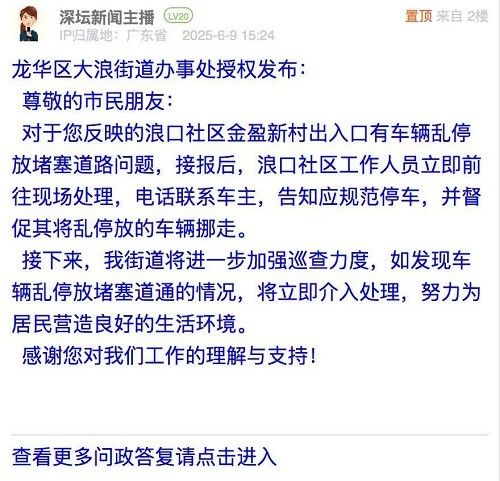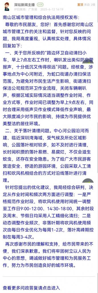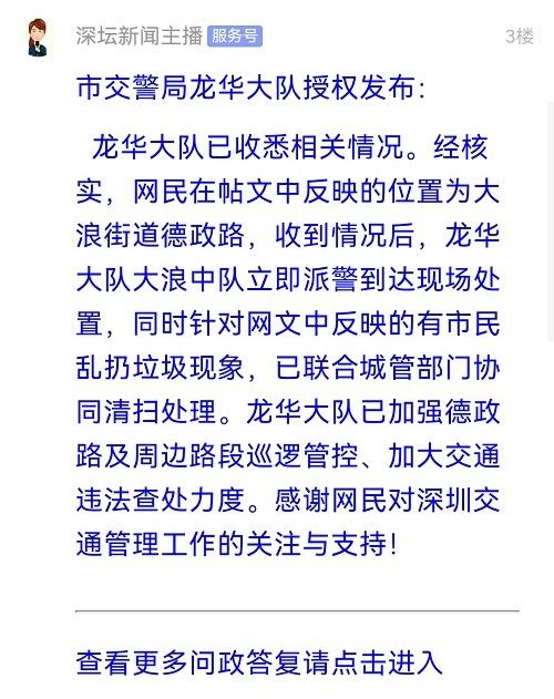 各职能单位如需对网友反映的问题进行回应,可在深圳论坛注册官方账号并通过认证,回帖进行回应。