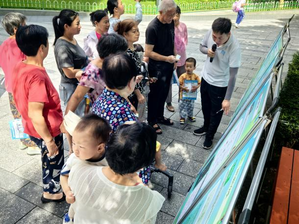 活动现场中,蒲公英讲师热情地向居民和过往行人发放宣传折页和《条例》,并邀请他们来到宣传展板前,细致讲解生活垃圾分类投放、分类收集、分类运输以及分类处理四个环节。同时,讲师还耐心地向居民介绍垃圾分类的意义、投放方法、实用技巧及注意事项,引导居民从日常小事做起,积极参与垃圾分类,共同建设和谐宜居的生活环境。