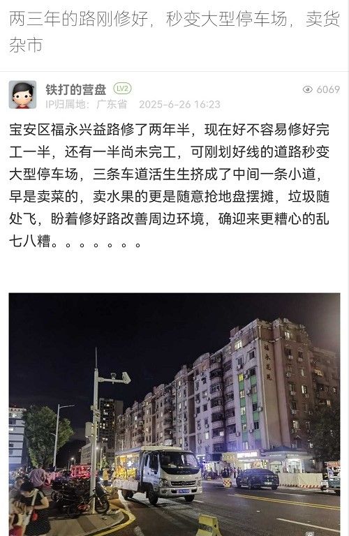 12. 帖文《两三年的路刚修好,秒变大型停车场,卖货杂市》