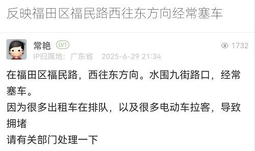 24. 帖文《反映福田区福民路西往东方向经常塞车》