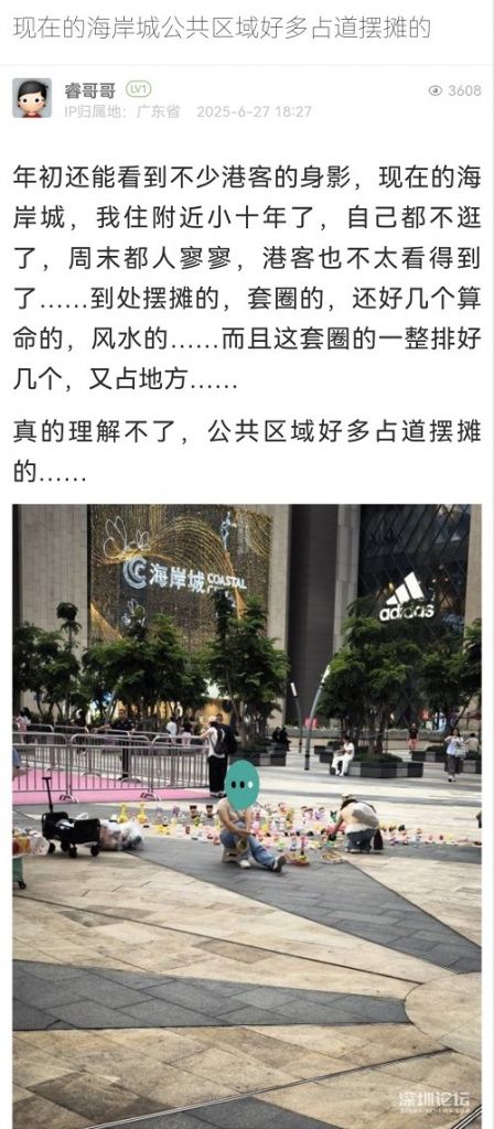 26. 帖文《现在的海岸城公共区域好多占道摆摊的》