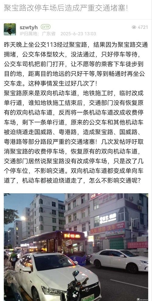 4. 帖文《聚宝路改停车场后造成严重交通堵塞!》