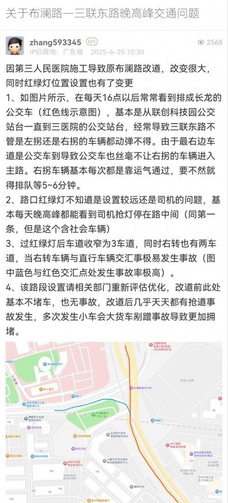 7. 帖文《关于布澜路—三联东路晚高峰交通问题》