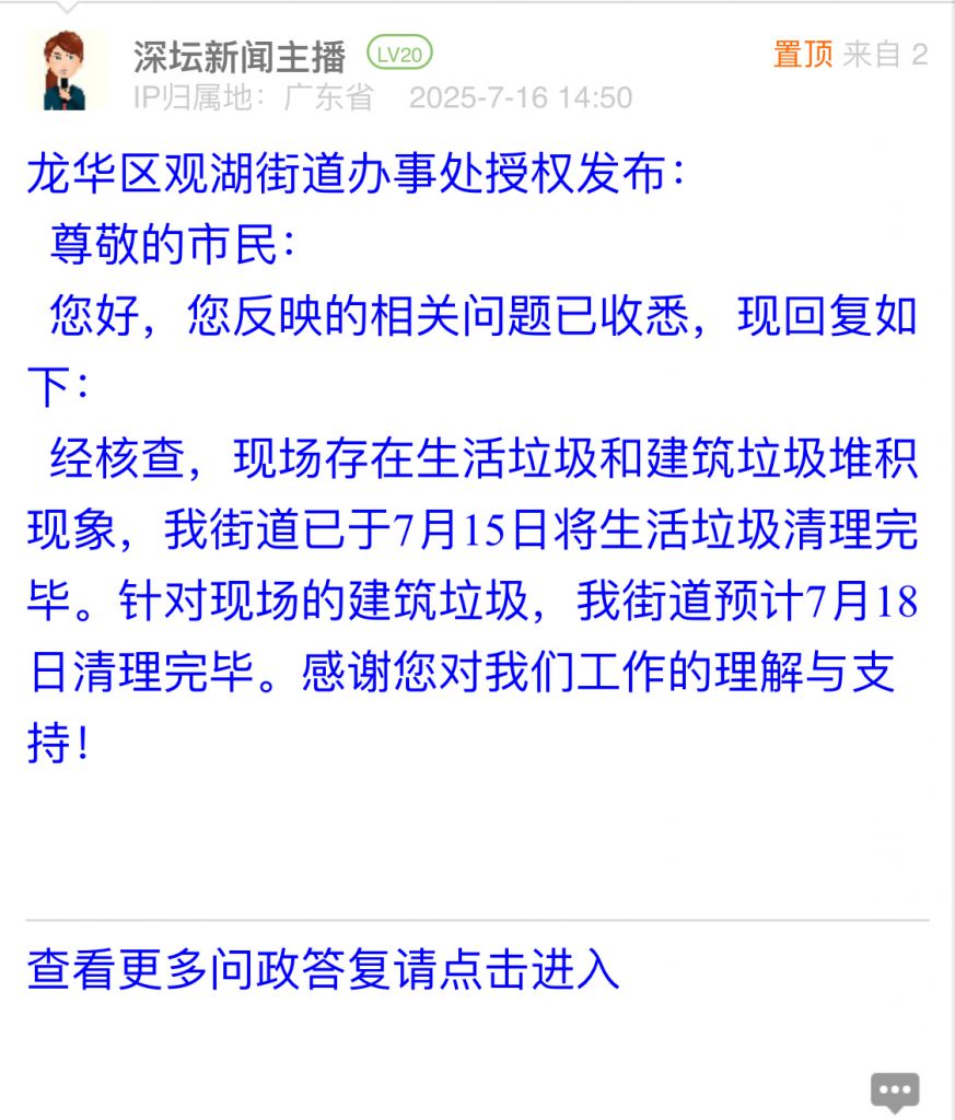 经核查,现场存在生活垃圾和建筑垃圾堆积现象,我街道已于7月15日将生活垃圾清理完毕。针对现场的建筑垃圾,我街道预计7月18日清理完毕。感谢您对我们工作的理解与支持!
