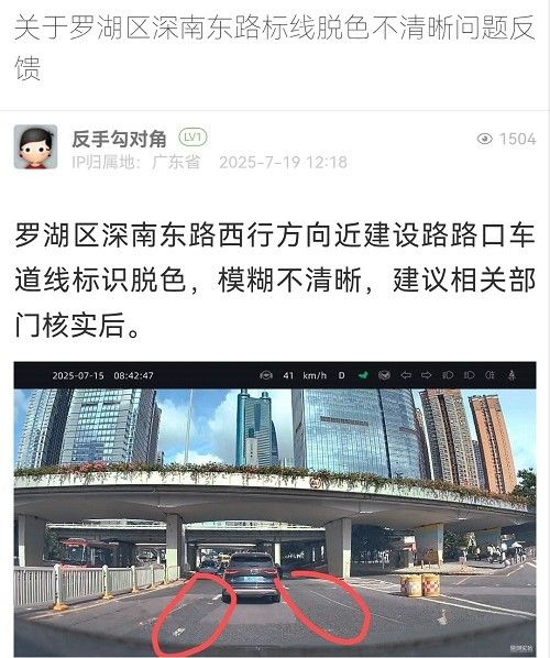 29. 帖文《关于罗湖区深南东路标线脱色不清晰问题反馈》