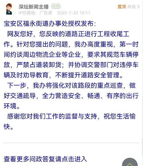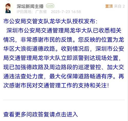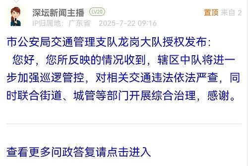 各职能单位如需对网友反映的问题进行回应,可在深圳论坛注册官方账号并通过认证,回帖进行回应。