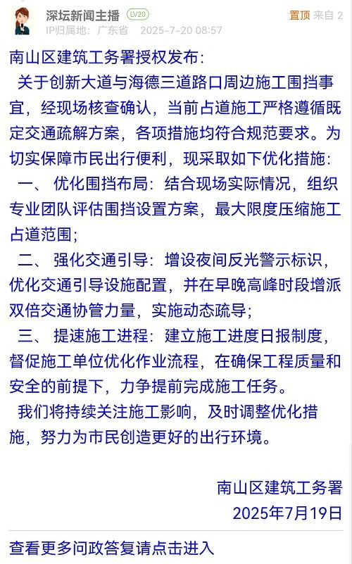 我们将持续关注施工影响,及时调整优化措施,努力为市民创造更好的出行环境。