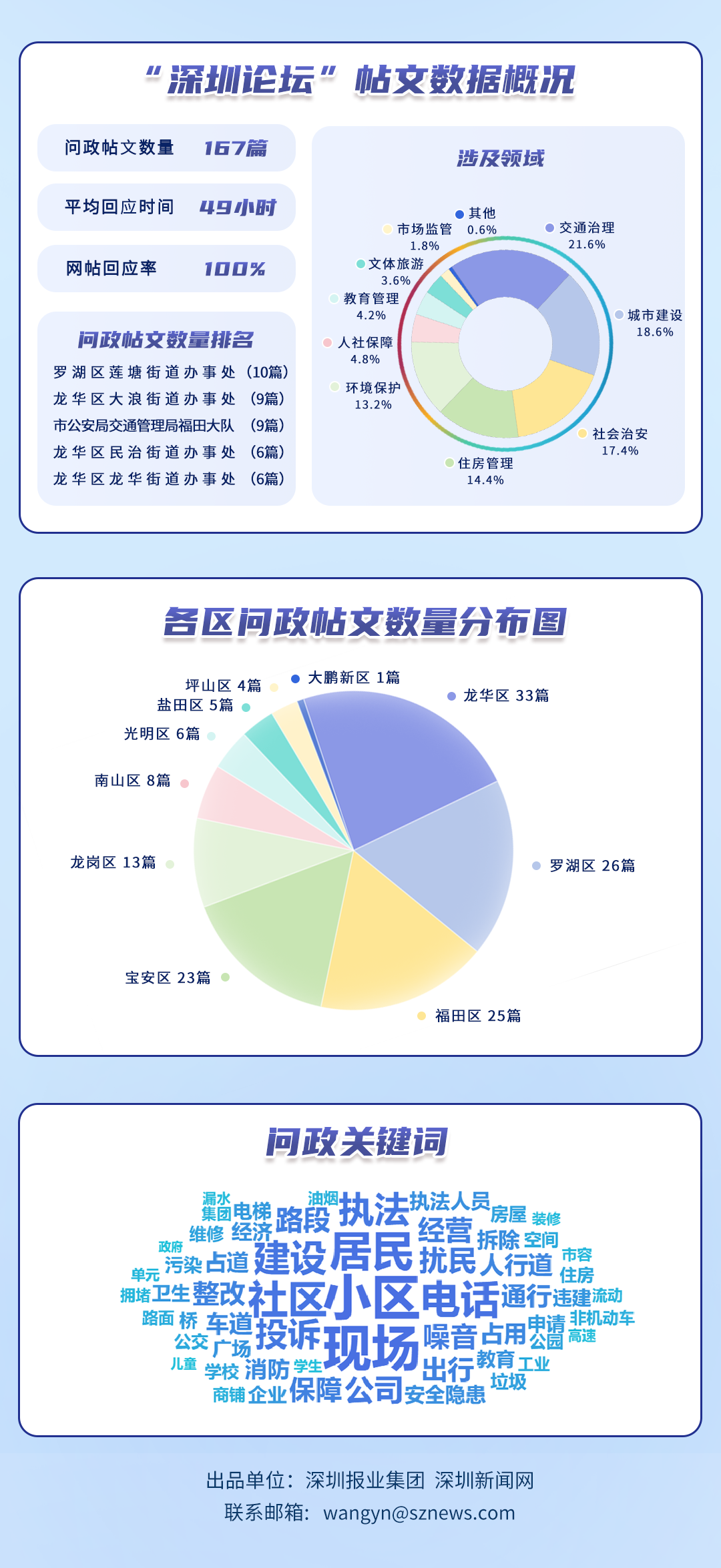 榜单帖文数据源自深圳论坛,均为网民点名希望涉事单位回应的网帖,共涵盖77个单位、167篇网帖。所采集帖文发布时间为2025年8月1日至8月31日,采集截止时间为2025年9月2日。