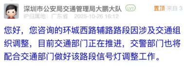 3、有市民反映大鹏新区某道路及信号灯迟迟未开通