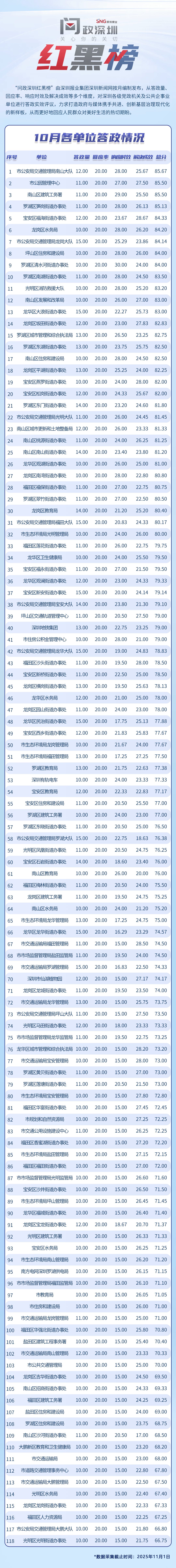 “问政深圳红黑榜”具有科学、合理、完备的综合评价体系,能够综合评估深圳各级党政机关和公共企事业单位的答政情况。