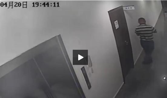 视频被分割成多段。其中一段显示,4月20日19时44分,一名男子身着条纹便服,走出电梯时脚步晃荡,一度无法站稳差点撞倒在墙上。19时50分左右,该男子在保安的搀扶下回到分局。知情人士称,条纹便服男子就是钟宇军。