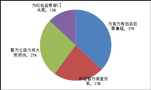 事发一周之内,各网站转载相关新闻312条;两大微博检索到相关信息399条;本地论坛网帖233条。网民讨论观点集中于微博、新闻跟帖、本地论坛:一、多数网民认为官方有包庇犯罪嫌疑;二、部分网民质疑警方调查效率;三、部分网民认为警方公信力将大受损伤;四、少数网民认为纪检监察部门失职。