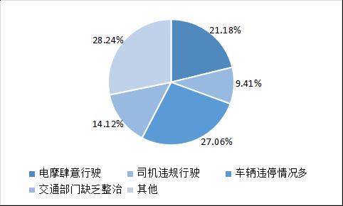 有25.88%的被调查居民认为布心片区交汇路口过多是该片区交通堵塞的主要原因,反映修路、封路情况多导致交通堵塞的被调查居民占到20%,认为路面车辆过多导致交通堵塞的被调查居民为18.82%。另外,认为该片区“道路过窄”“交通部门缺乏管理”导致交通堵塞的被调查居民分别为15.29%及9.41%。