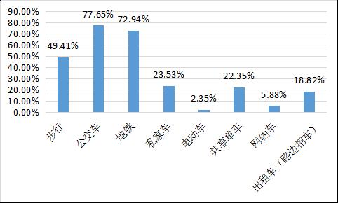 (一)公交车、地铁、步行等绿色出行方式为被调查居民首选,其中,公交出行吸引力大。