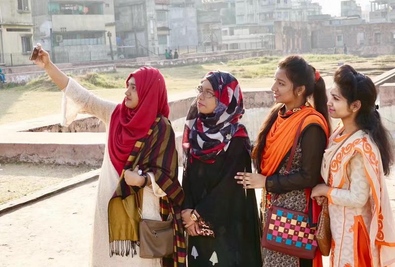 在达卡几天时间里,感觉孟加拉国盛产美女,加之她们喜欢鲜艳的服饰,一些年轻女性就显得更加靓丽。李仁奇 摄