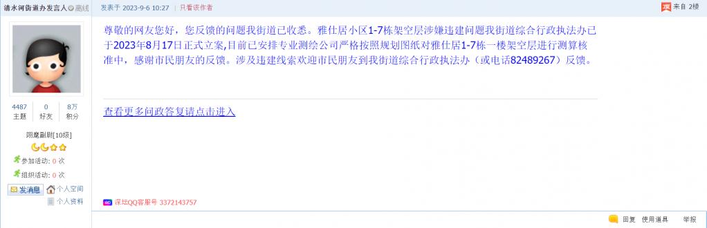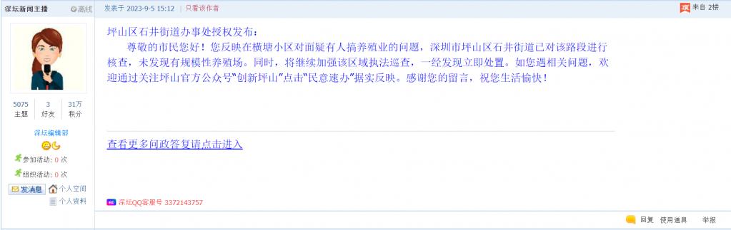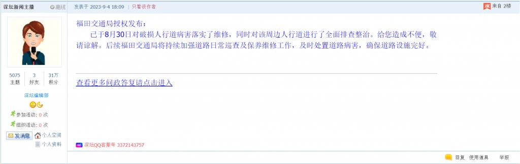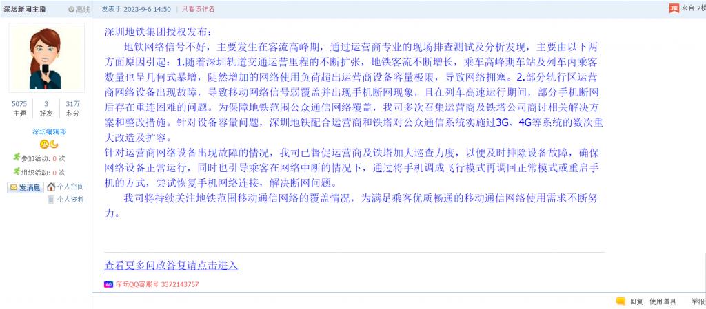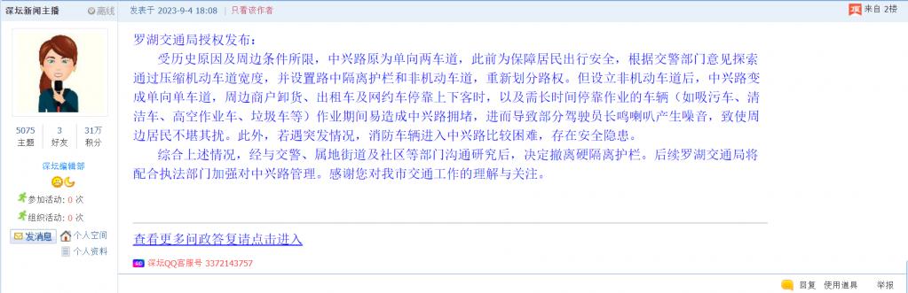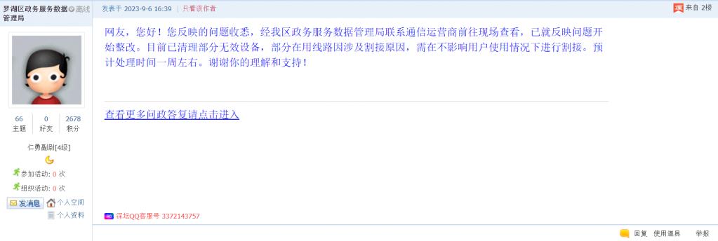 各职能单位如需对网友反映的问题进行回应,可在深圳论坛注册官方账号并通过认证,回帖进行回应,也可通过客服QQ以及热线电话,委托深圳论坛代为回应。