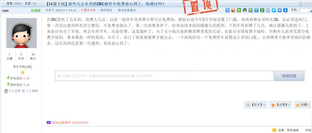 14、帖文《前些天去水贝的IBC被停车收费恶心到了,你遇过吗?》