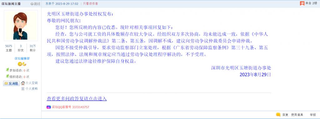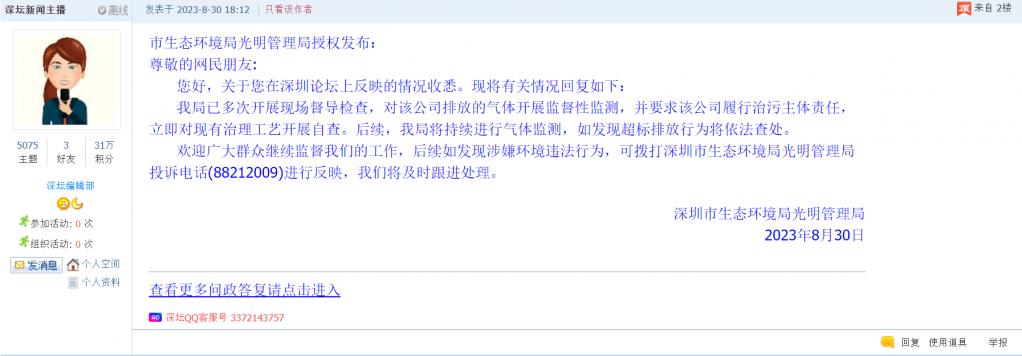 您好,关于您在深圳论坛上反映的情况收悉。现将有关情况回复如下:
