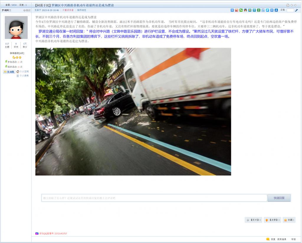 7、帖文《罗湖区中兴路的非机动车道最终还是成为摆设》