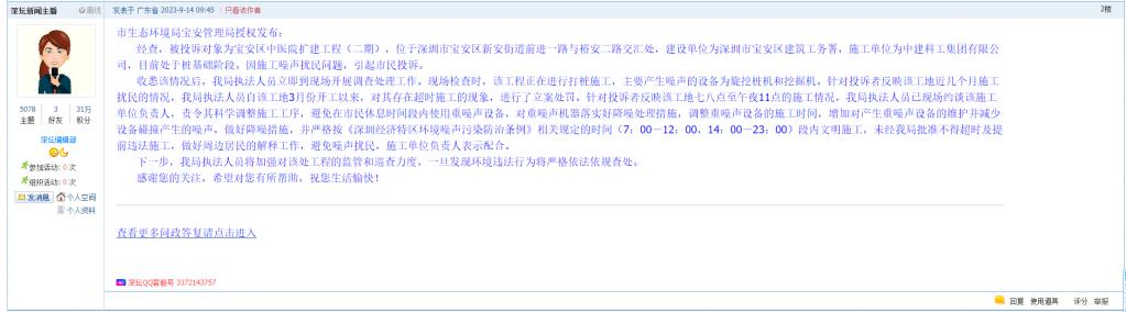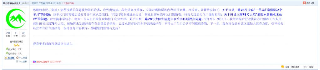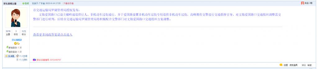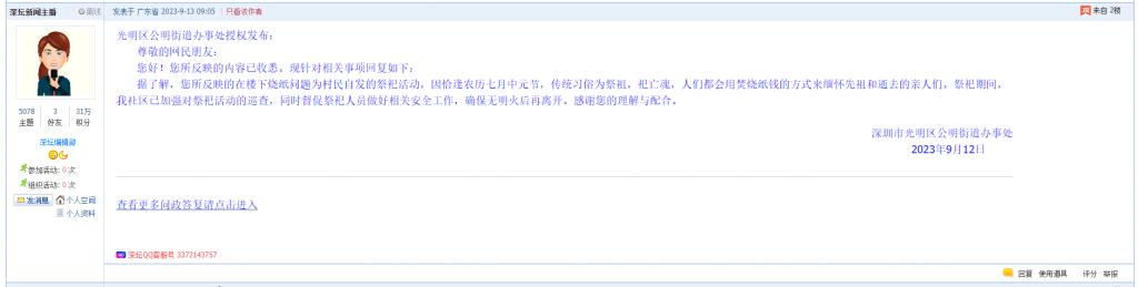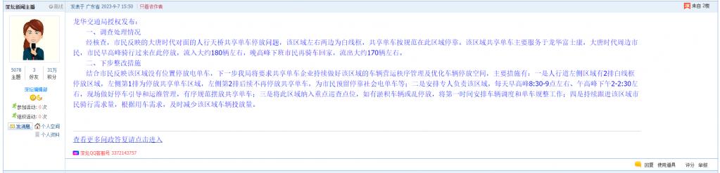 据统计,2023年9月4日-9月10日,网友在深圳论坛发布问政类帖文共47篇,得到相关单位正式回应的帖文数为23篇。